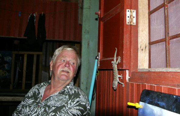 Iltaisin mökille tullessamme huhuilemme, onko gekkonen kotona. Yleensä se on. Eilen se tuli kanssamme verannalle iltapalalle. Sivistys (= parvekevalo) ei ollutkaan niin hyvä juttu kuin kuvittelimme. Valo houkutteli paikalle ikävästi purevia pikkupörrejä. Jussin survival-pussista löytyi hydrokortisonia helpottamaan kutinaa.