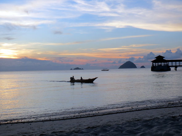 Meillä on meneillään viimeinen saaripäivä. Tyhjensimme aamulla rinkat ja ravistelimme hiekat pois. Illalla pitää pakata, sillä lähdemme mantereelle Kuala Besuitiin huomenna kello kahdeksan aamuveneellä. Lento Kota Bharusta lähtee iltapäivällä. Tuttu Rainforest hotelli odottaa Kuala Lumpurissa.