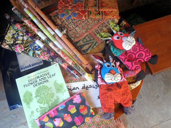 Menimme rohkeasti sekaan. Minulla oli vielä yksi tuliainen – itselle – ostamatta. Löysimme kultalehdyköitä, joita ajattelin käyttää tulevissa maalauksissa. ”These are real gold”, myyjä hehkutti. Sietää ollakin, sillä ne eivät olleet halpoja.
