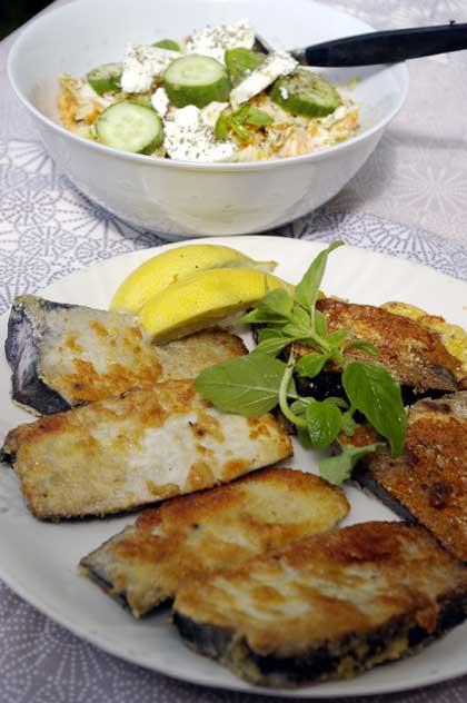 Söimme loistoaterian. Tatti oli aivan puhdas ja kiinteä. Leikkasin meille tukevat pihvit. Kastoin ne kananmunaan ja pyörittelin kevyesti suolalla ja pippurilla maustettuissa korppujauhoissa. Paistoin pannulla ja tarjosin heti. Makuelämys oli taattu.