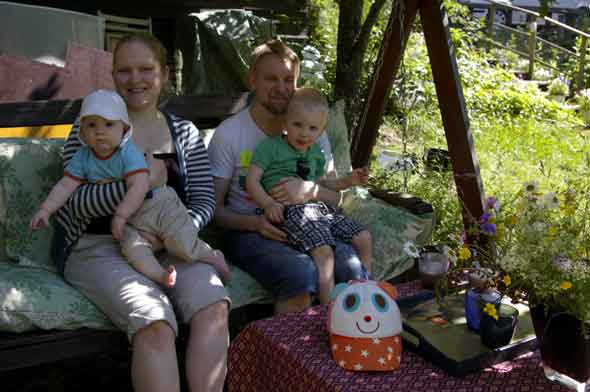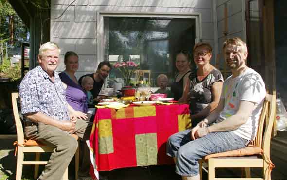 Juhlimme perhepiirissä. Annan ja Miikan nuoriso nautti täysillä kesäisestä mökkiviikonlopusta. Pikkupojat polskivat iltapäivän aurinkoisina tunteina nakuina kahluualtaassa. Rohkein kaikista oli vesipeto Samu.
