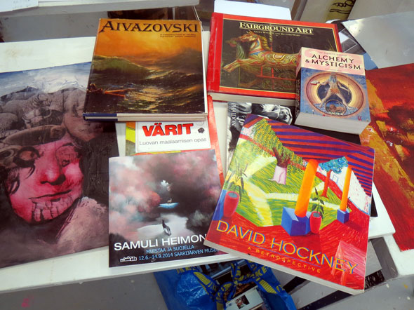 Päivän huippuhetki oli illalla, kun Samuli esitteli kaikille kurssilaisille ja opettajille töitään videotykin välityksellä isossa salissa. Olin sen jälkeen aika hiljainen. Osa porukasta jatkoi vielä maalaamista. Minä vetäydyin lammen rannalle kirjan kera keräämään voimia huomiseen.