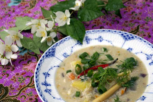 Olemme käyneet vuosia sitten yhdessä kolmen hengen joukkueena Thaimaassa. Tarjoan edelleenkin mielelläni Liisalle thaimakuja. Tällä kerralla suomalais-thaiversiona. Eli Vanajan kuhaa kookosmaito-sitruunaruoho-galangalang-limetinlehtimaustein.