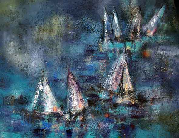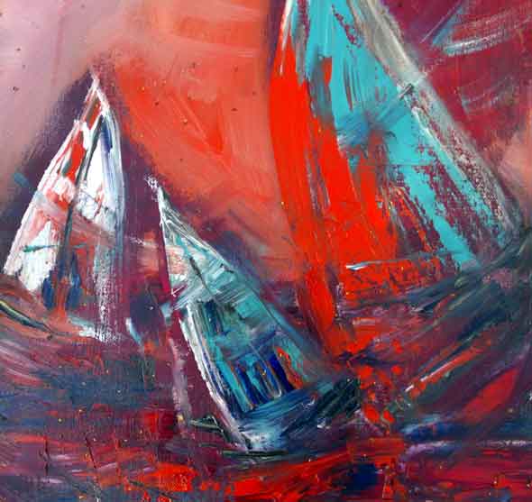 Minulla on meneillään viimeiset viikot maalata lopputöitä. Jämähdin purjeveneisiin. Ehkäpä siksi, että ne hivelevät silmää. Tässä päivitetty versio aiemmin maalaamastani työstä ja toinen punasävyinen, joka voisi toimia Orivedellä maalamieni purjeiden kanssa.