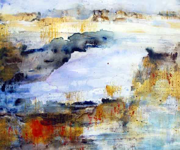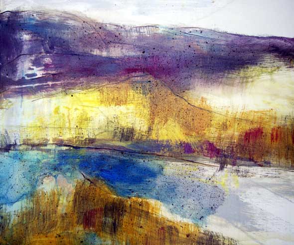 Viimeistelin keväällä Päivölässä maalaamiani maisemakuvia. Akryylin päälle voi mainiosti jatkaa kiiltävillä öljyväreillä. Halusin kuitenkin säilyttää kuultavat pohjakerrokset