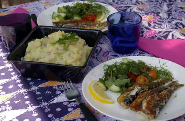 Jussi paistoi pitkästä aikaa muikkuja. Oikein voissa. Minun oli ihan pakko tehdä niiden kera perunamuhennosta. Maut sopivat niin hyvin yhteen, että ruokailusta tuli pitkä ja herkullinen.
