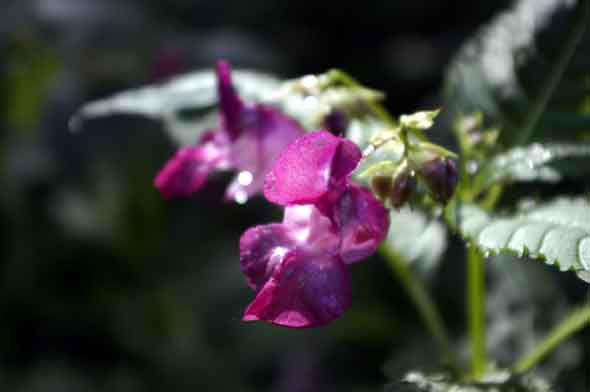 Saimme mökille roppakaupalla kaivattua sadetta. Aamulla aurinko pilkisteli lupaavasti. Teimme pitkän kävelyretken Ruskeenkärkeen. Järkytys oli suuri, kun huomasimme että vieraslajike jättipalsami uhkaa mökkimaastoa kahdelta suunnalta. Lähimmät kasvit ovat jo kilometrin päässä. Ei hyvä.