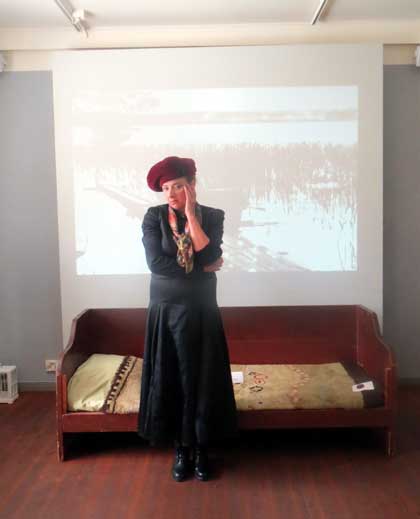 Jatkoimme matkaa Järvenpään taidemuseoon, jota tähdittivät Venny Soldan-Brofeldt ja Eero Järnefelt. Ostimme yhteisliput, joilla pääsi myös Aholaan. Siellä kohtasimme Vennyn. Näyttelijä Marika Sampio-Utriainen oli eläytynyt hänen maailmaansa ja esitti osansa mallikkaasti. Minusta on aina hauskaa, kun historia tehdään eläväksi.