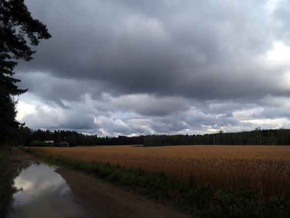 Elokuun viimeisellä viikolla on satanut joka päivä ja joka yö. Syksyinen metsä tuoksui havuilta ja maatuvilta saniaisilta. Olemme kulkeneet lenkillä sienikorit käsivarrella.