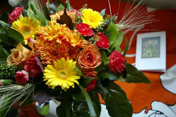 Kun avajaiskukat kuihtuivat, sain ilokseni vielä kaksi upeaa kukkakimppua. Toisen Jussin sisaruksilta, toisen siskolta. Artisti kiittää ja lupaa hoidella niitä rakkaudella. On tämä ollut vaan hieno elämys.