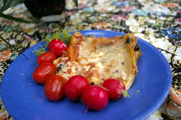 Kaikki lapset pitävät pastasta. Niinpä päätin ilahduttaa pikkuväkeä ja aikuisiakin kasvislasagnella. Tein tuoretattikastiketta ja vahvaa tomaattikastiketta yrttien kera. Lisäksi paahdoin kuumassa uunissa kesäkurpitsaa ja tomaatteja. Ladoin kaikki ainekset uunivuokaan kerroksittain. Suuri vuuallinen herkkua maistui niin hyvin, että seuraavaksi päiväksi jäi vain rippeet.