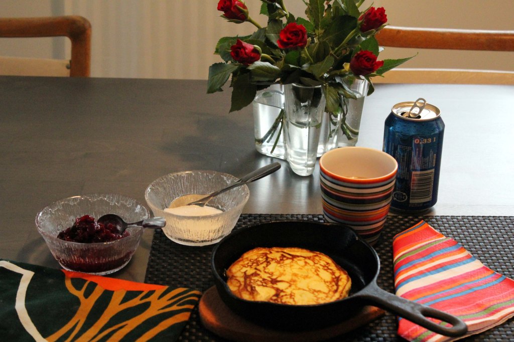 Taikina sai vetäytyä puolisen tuntia. Paistoin letut keskilämmöllä voissa kullanruskeiksi. Tarjosin sokerin ja hillon kera. Nam. Suosittelen.