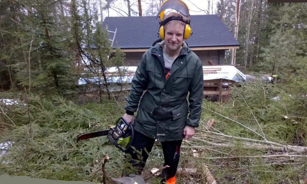 Reippaat metsurit Jussi ja Miika ovat kunnostautuneet mökillä. Muutama viikko sitten rannasta kaatui iso leppä. Eilen rinteestä kaatui useampikin kuusi.