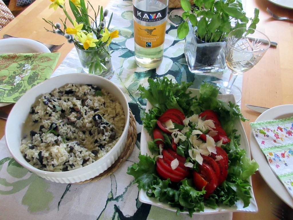Immon keittössä tuoksui valkosipuli, kun palasimme retkeltä. Mies valmisti oivallista tattirisottoa. Tosin maku oli vähän liiankin vahva, sillä kanaliemessä oli chiliä, joka yllätti kokinkin. Me emme pelästyneet ja söimme hyvällä halulla.