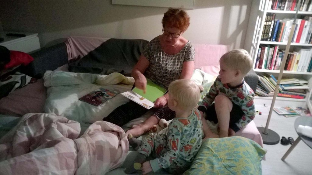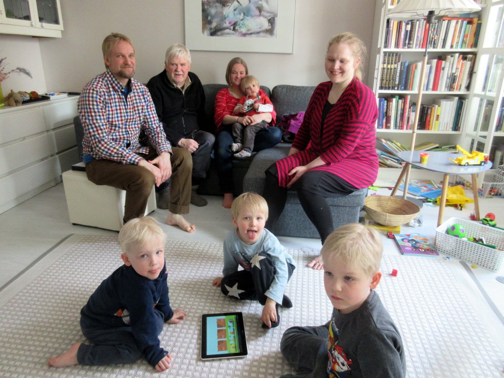 Mummin kalakeitto ja jäätelö maistuivat. Iltapäivällä kävimme läheisessä leikkipuistossa ja galleriassa. Otso ilmoitti, että haluaa jäädä tänne. Voi että, meidän pieneen kotiimme ei mahdu kerralla yhdeksän ihmistä yöpymään. Mökille kyllä. Odotamme kaikki jo kovasti kesälomaa.