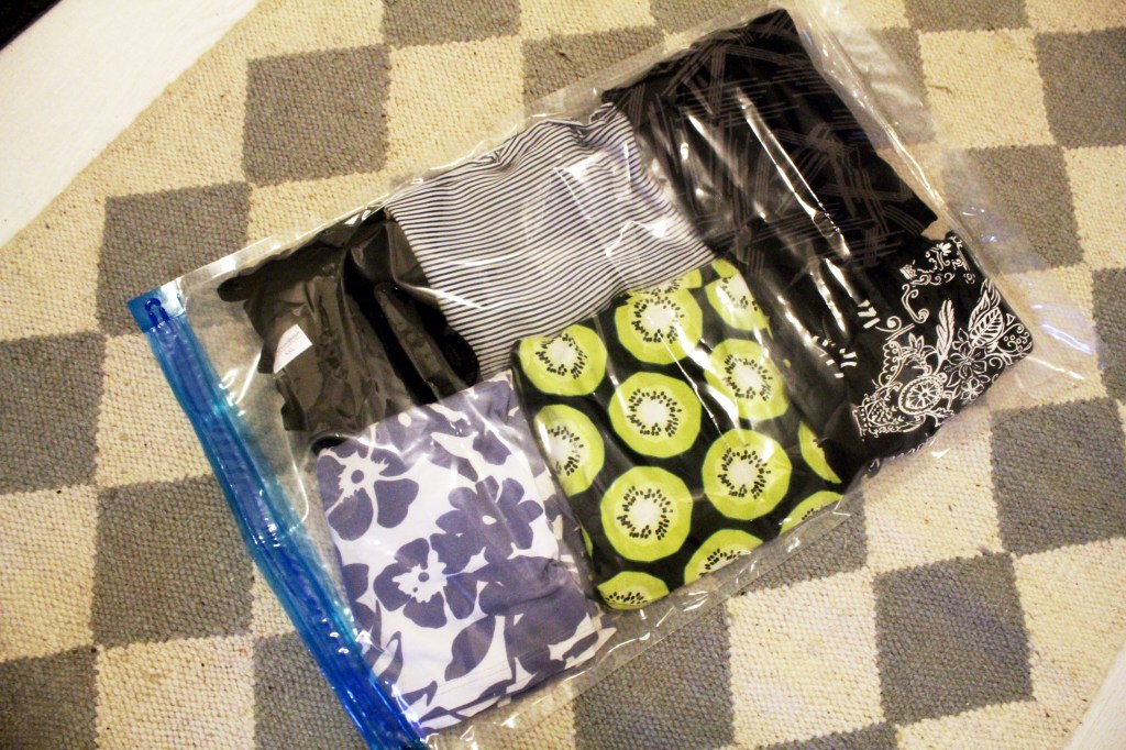 Se on menoa nyt! Laukut on pakattu piukkaan. Kokeilimme ihka ensimmäistä kertaa tyhjiöpussia.