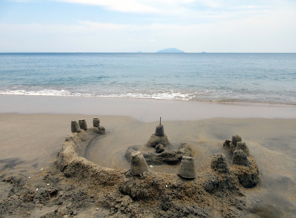 Ensisilmäyksellä näytti, että nyt meillä vihdoinkin on lomaloma. Täällä ei todellakaan ole muuta tekemistä kuin ottaa aurinkoa (puiden varjossa, rantatuoleja ei tietenkään ole), uida, lueskella ja minä pääsen maalauspuuhiin.