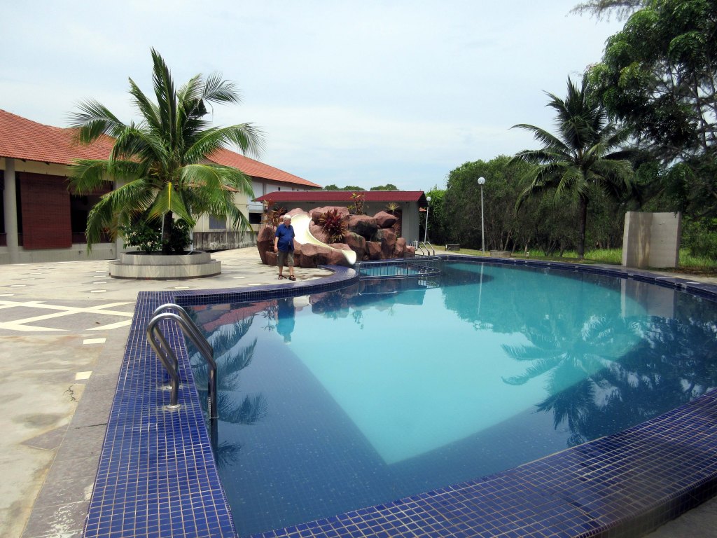 Söimme maittavan lounaan hotellin suuressa ravintolassa. Olimme ainoat asiakkaat. Hintataso on lähes kaksinkertainen Kuala Terengganun edulliseen tarjontaan verrattuna. Olemmehan turistipaikassa. Ja kuivassa sellaisessa. Täällä ei alkoholia tarjoilla. Saa nähdä, vietämmekö ihan oikeasti raittiin vapun!