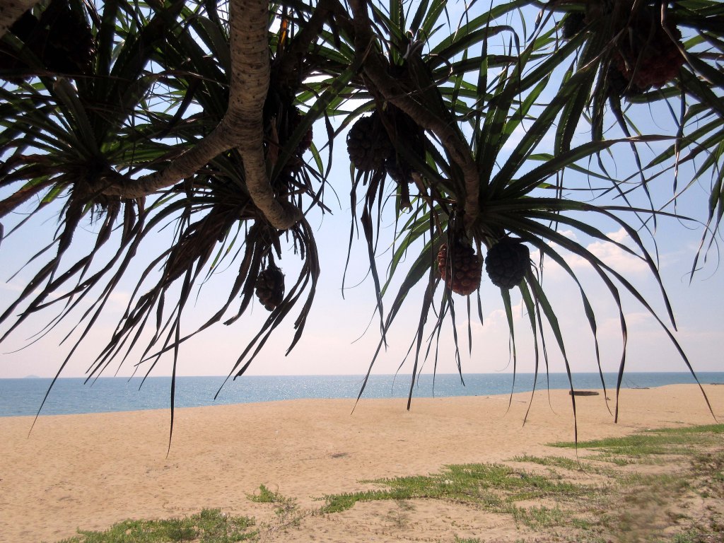 Leiriydyimme rannalle kasuariinipuiden katveeseen. Yllämme kaartui ananaspuu.
