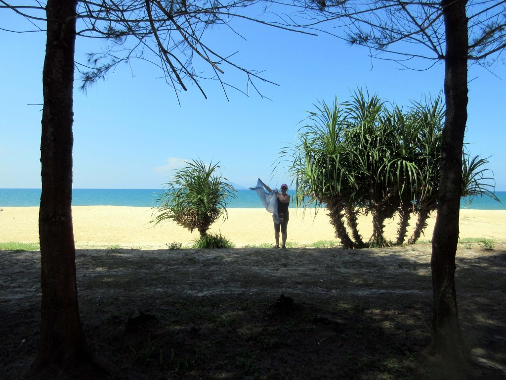 Riensimme ajoissa Kuala Terengganun bussiasemalle odottelemaan kyytiä Kuala Besutiin. Sieltä oli tarkoitus jatkaa matkaa taksilla Merangiin. Toisin kävi. Ystävällinen vanhaherra keltaisessa taksissa puhui meidät hetkessä ympäri. Hän tarjosi taksikyytiä suoraan rantahotelliimme tingittyyn 90 ringgitin (20 euroa) hintaan. Matkaa oli noin 50 km. Niinpä me ajelimme vappuaattona herroiksi Malesin itärannikkoa pohjoiseen. Maisema oli siisti ja vauras.