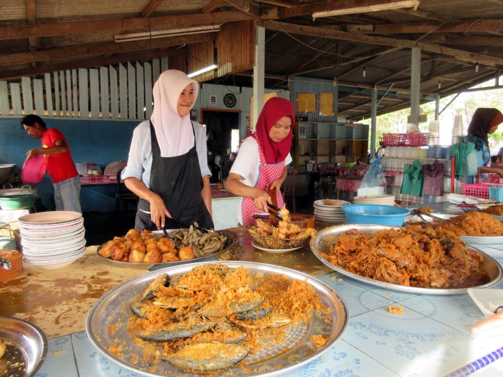 Aamuaurinko leikitteli värillisten ruutuikkunoiden takana. Piti hetken miettiä, missä nyt olemme. Tutkimme eilen hotellin retkitarjontaa. Lähisaarille pääsisi vaikkapa päiväretkelle snorklaamaan, merelle kalaan ja mustekaloja pyydystämään, illalla joelle katselemaan kiiltomatoja, minibussiretkelle Kuala Terengganun nähtävyyksiä ihmettelemään tai osallistumaan grillausillalliselle. Kaikki nämä vaativat vähintään viisi osallistujaa. Panimme harkintaan. Ainakin grilliherkut kiinnostavat, sillä kadunvarsipaikat eivät todellakaan ole gourmet-laatua.