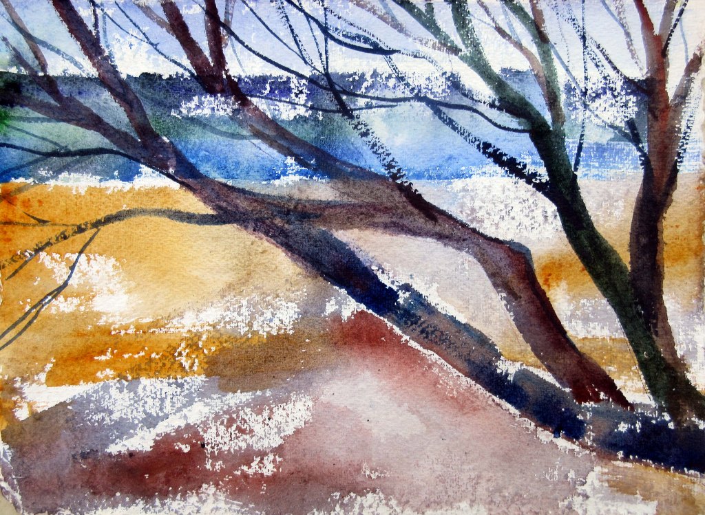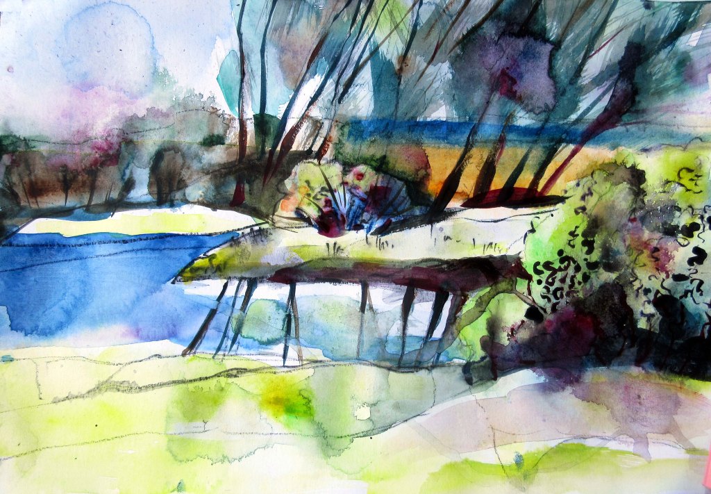 Tällainen maalausmatka sopii minulle. On aikaa katsella luontoa, kerätä vaikutelmia ja levittää akvarellitarvikkeet puutarhaan tai rannan tuntumaan. Jos lähietäisyydellä on sopiva ulkopöytä ja penkki, maalari on tyytyväinen. Minulla oli tapana kiertää lehtiön kanssa tekemässä luonnoksia. Akvarellit syntyivät niiden pohjalta. Käytin toki myös valokuvia muistin virkistämiseksi.