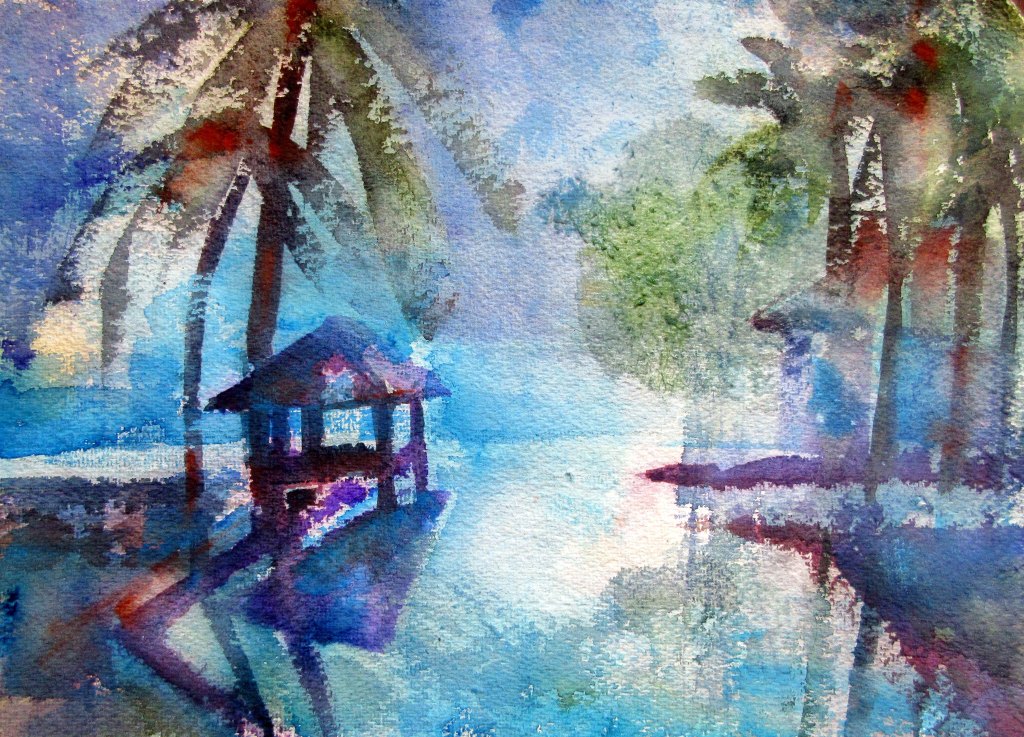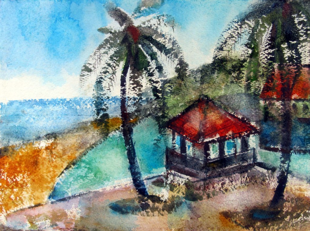 Olen maalannut ilokseni Malesian lomamme aikana. Vietimme hiljaisella Etelä-Kiinanmeren rannalla pari viikkoa. Ohjelmassa oli vain auringonpaistetta, uimista, syömistä ja lekottelua hiekkarannalla ja uima-altaalla.
