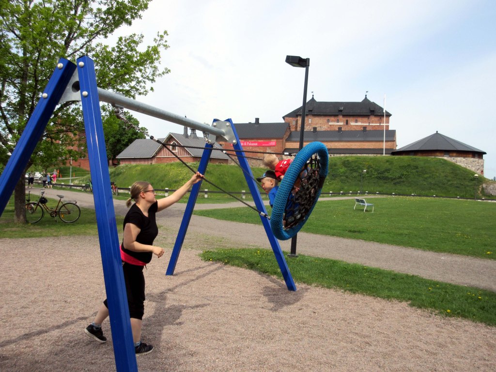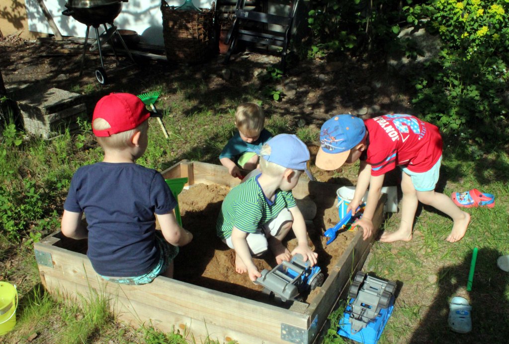 Viikonloppuna tämä toive toteutui. Hiekka pöllysi hiekkalaatikossa ja vesileikit kastelivat joka pojan. Pallo vieri alas rinnettä ja pomppi kukkapenkeissä.
