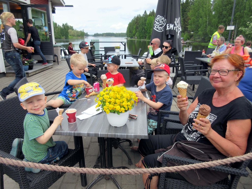 Poikaset ilmoittivat olevansa kesälomalla. Mukava, että kaikki viihtyvät mökillä. Minä yritän kokata lapsille mieluista ruokaa. Olemme syöneet kalakeittoa ja maisseja ja kalkkunamakkaroita. Ja jäätelöä, nektariineja ja vesimelonia. Aamuisin ja iltaisin puuro ja hilloleivät maistuvat.