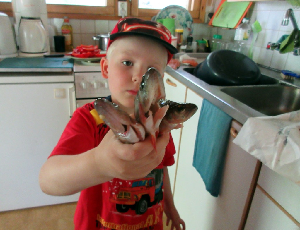 Tänään yllätin koko porukan taiteilemalla veneperunoita. Jussi paistoi tuoretta turskaa. Sellaista löytyi K-kaupan kalatiskiltä, ei Vanajavedestä.
