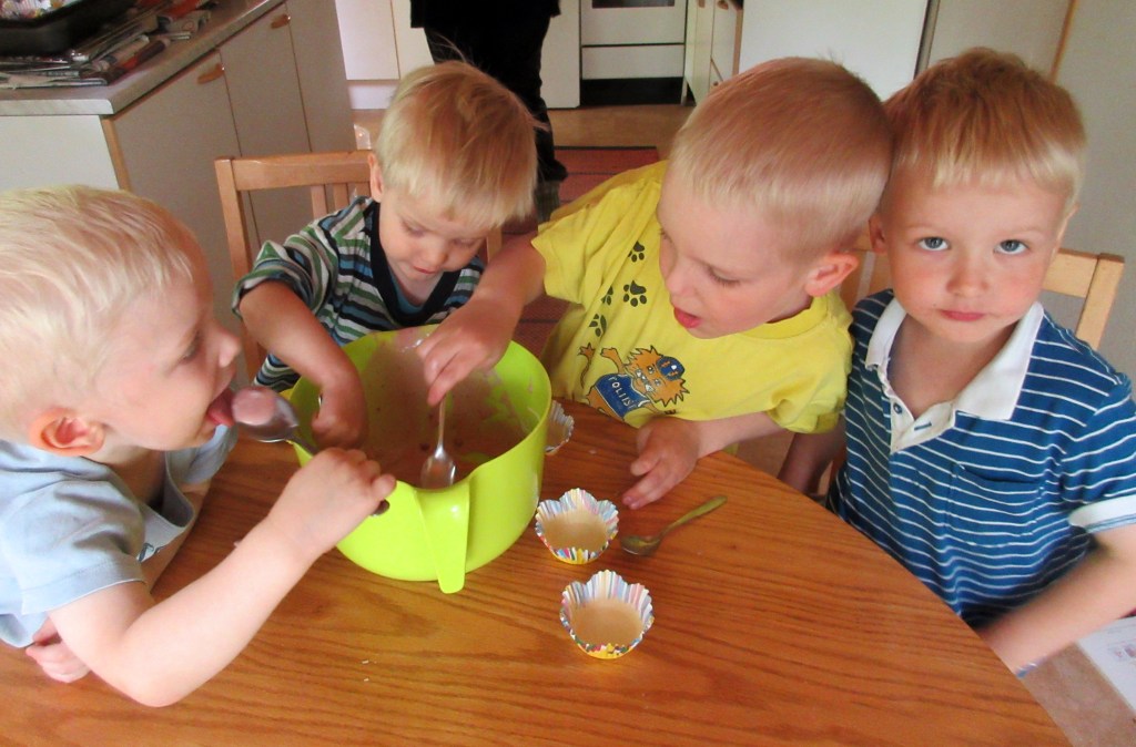 Pojat rapsivat taikinakulhon putipuhtaaksi.