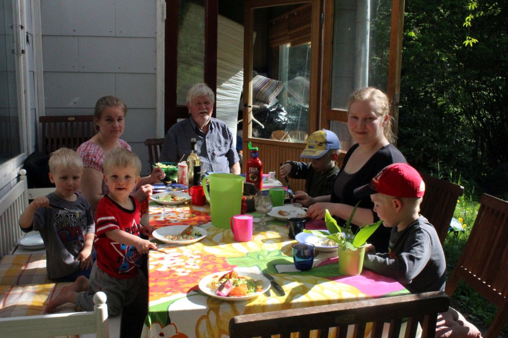 Laura, Otso ja Visa tulivat oikeasti kesälomalle. Miika on luvannut ajella ahkerasti Espoon ja Hattulan välillä. Hänen kesälomaansa on vielä aikaa. Anna, Samu ja Miska tulivat pikakäynnille, mutta viihtyivätkin sitten pitempään.