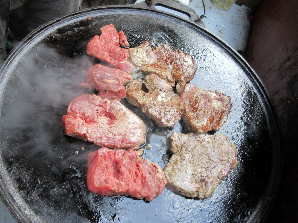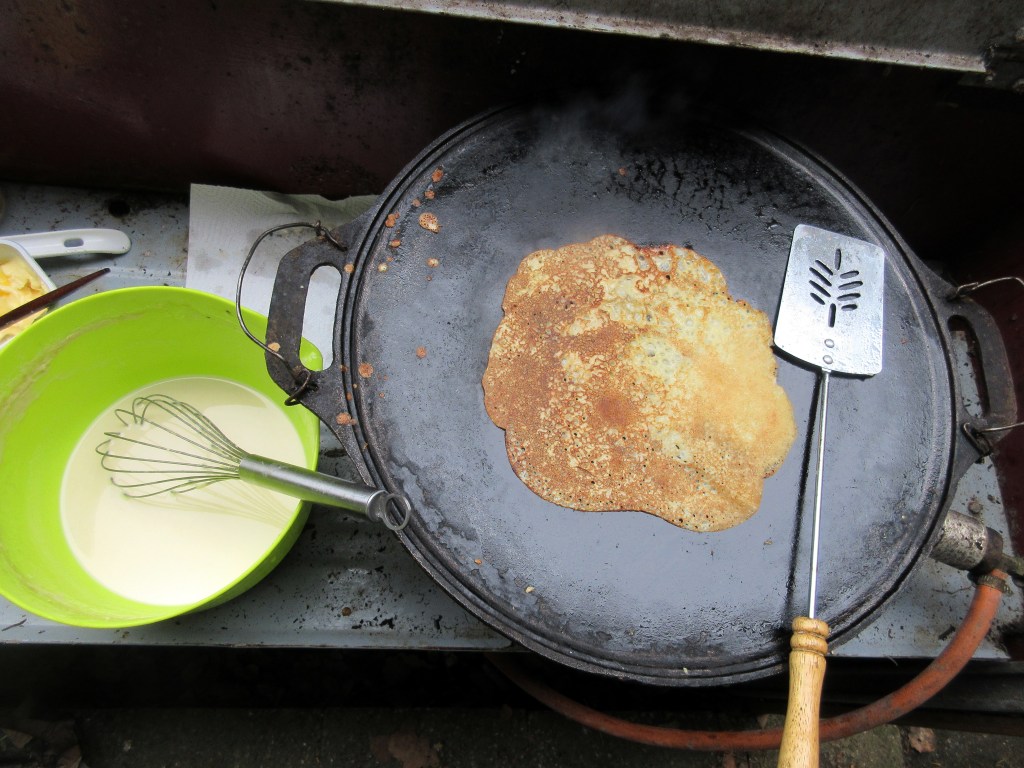 Ruuanvalmistus ulkosalla sentään onnistui. Käytössä oli hiiligrilli ja muurikka.