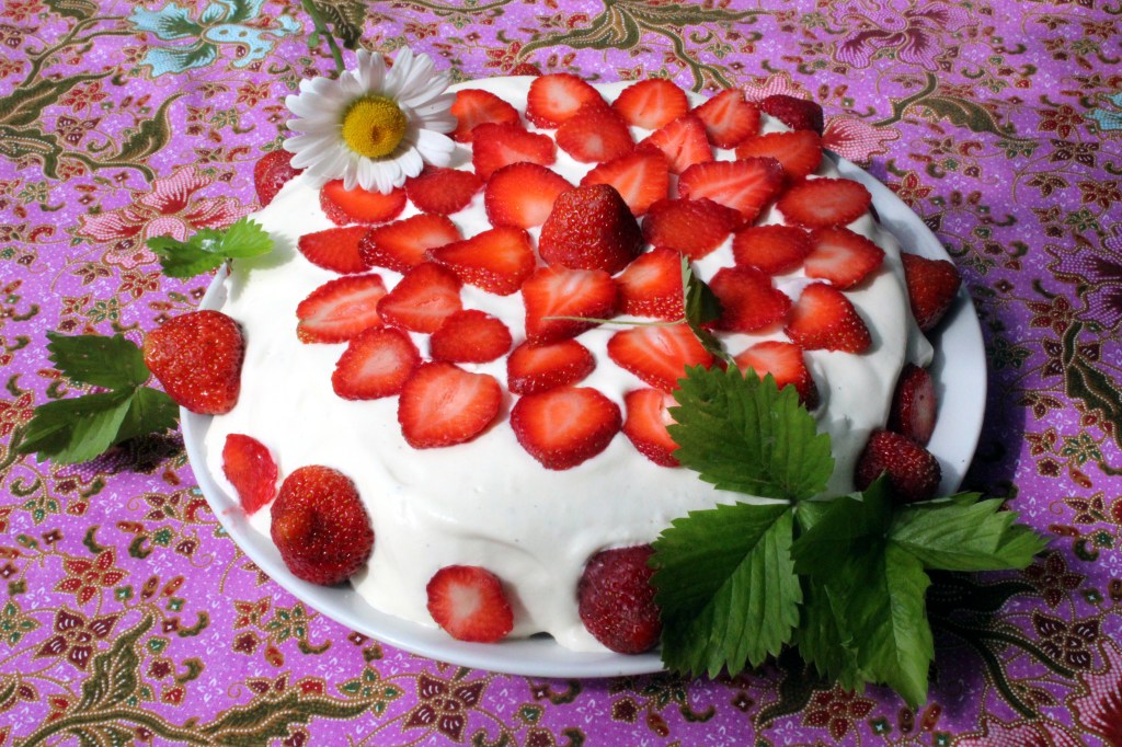 Kesäjuhlat ovat ilo. Juhlimme joka vuosi heinäkuussa Anna-tyttären ja minun syntymäpäiviä mökillä. Tarjoan joka vuosi mansikkakakkua. Niin nytkin. Mansikkasato oli myöhässä, mutta kakkuun niitä on löytynyt aina.