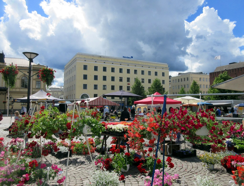 Kävin torilla kahvilla. Pikkukaupungin iloja on lyhyt kävelymatka keskustaan.