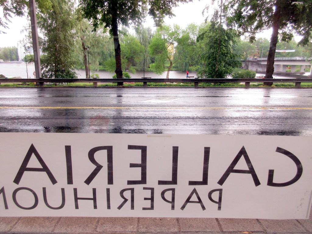 Poikkesin galleriassa tervehtimässä päivystäjäämme Tiina-Katriinaa. Katselimme näyteikkunasta, kuinka sadekuuro kasteli kaupungin ja rakeet pomppivat iloisesti asfaltilla.