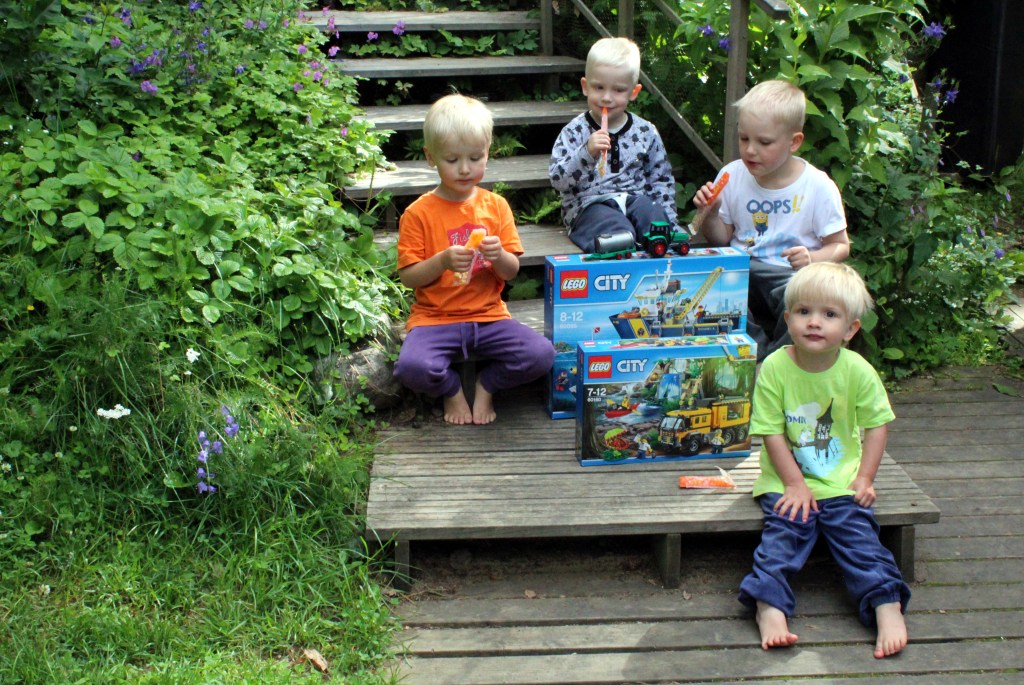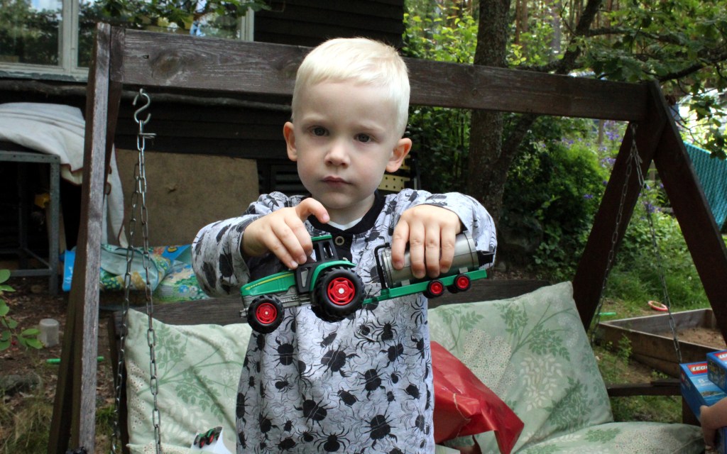 Otso sai isoja legopaketteja ja Visa traktorin ja peräkärryn. ”Juuri tällaisia olen aina toivonut”, Otso iloitsi.