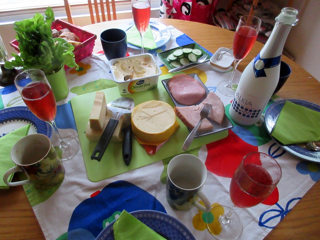 Perinteisiin kuuluu maittava aamiaisbrunssi. Niin nytkin.