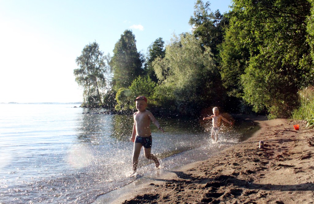 Siinä oli kesän tuntua, kun pojat kirmasivat rantavedessä.