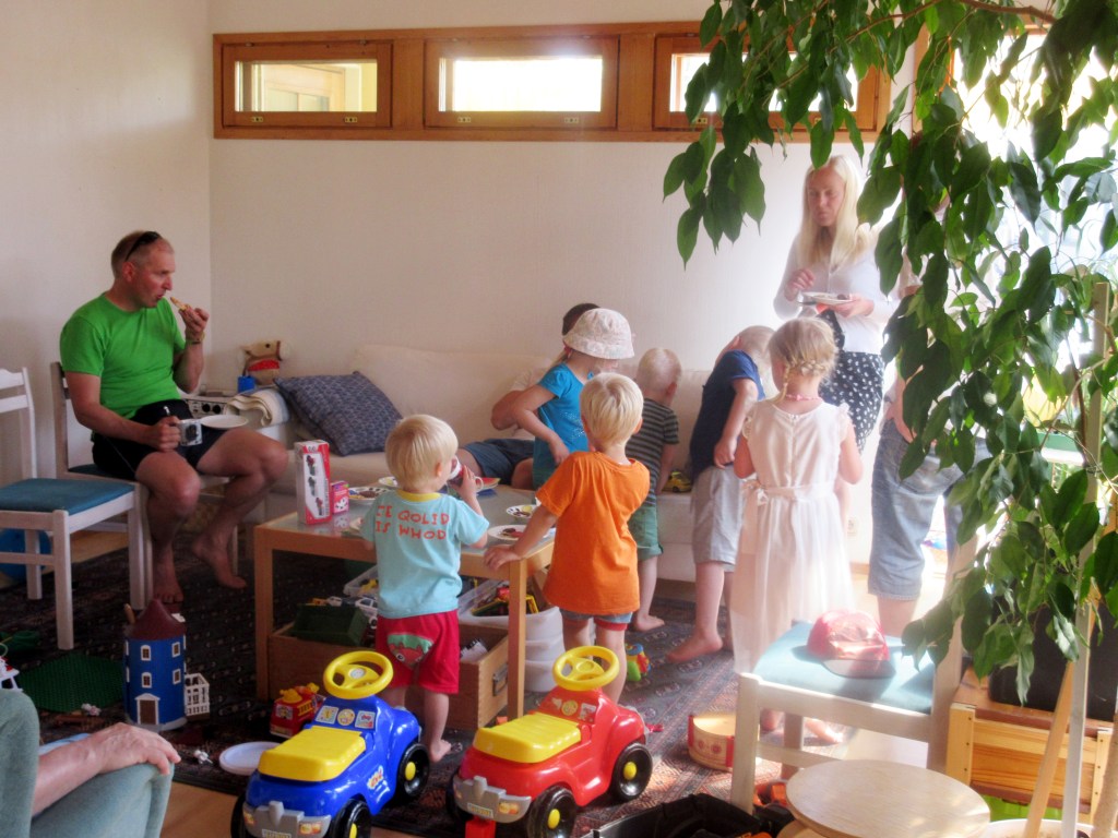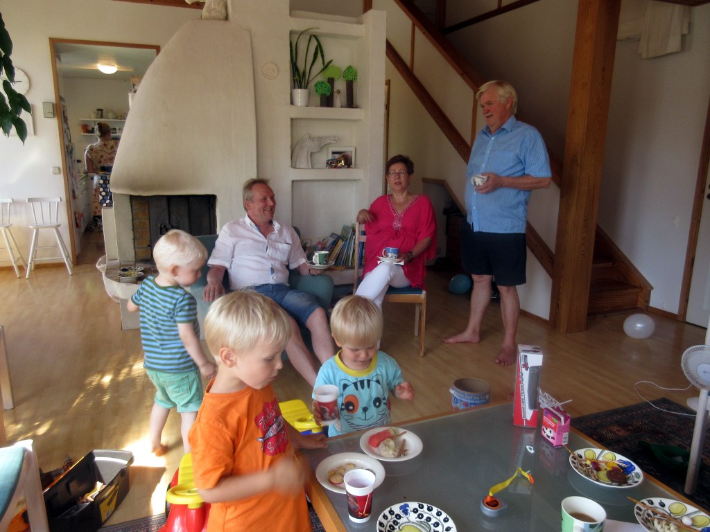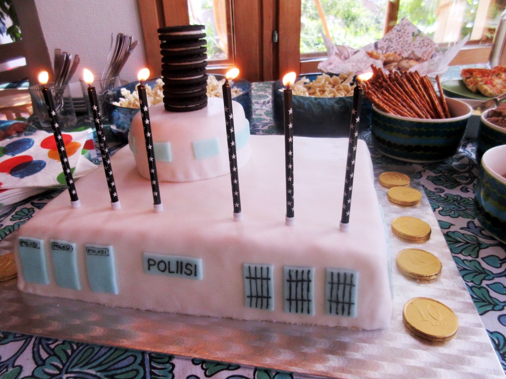 Otso juhli kotona Kauklahdessa aurinkoisena kesäsunnuntaina. Lapsivieraita oli enemmän kuin aikuisia. Me saavuimme Jussin kanssa apujoukoiksi jo lauantaina. Laura kunnostautui tänäkin vuonna toteuttamalla toivekakun. Toissa vuonna se oli paloauto, viime vuonna suuri kala ja nyt poliisiasema.