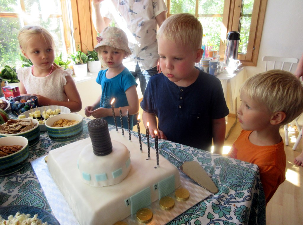 Kun Laura toi kakun pöytään, Otso pääsi puhaltaman kaikki kuusi kynttilää onnittelulaulun säestyksellä.