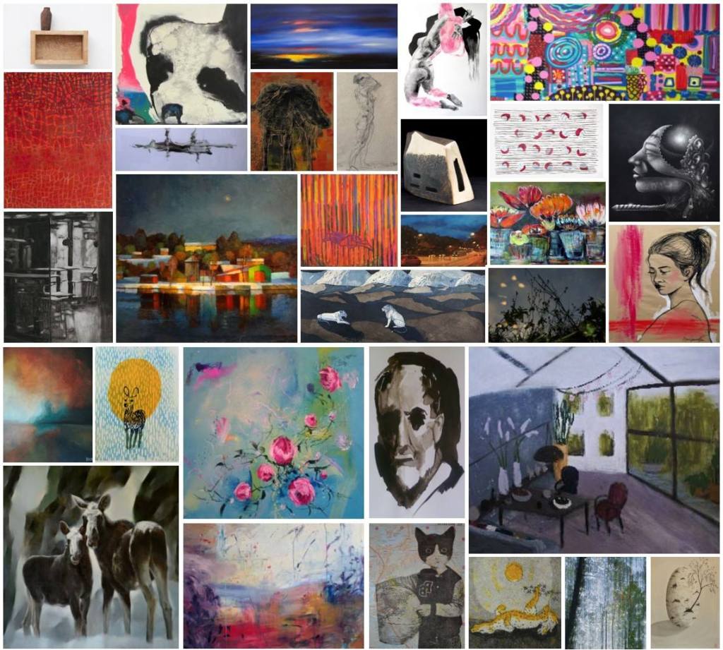 Tässä on taideverkkokauppa Taikossa myytyjä taideteoksia. Myös minun teokseni on kuvassa. Löydätkö sen?
