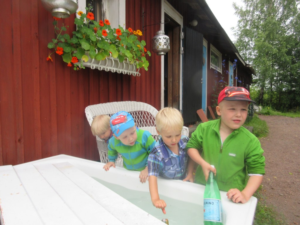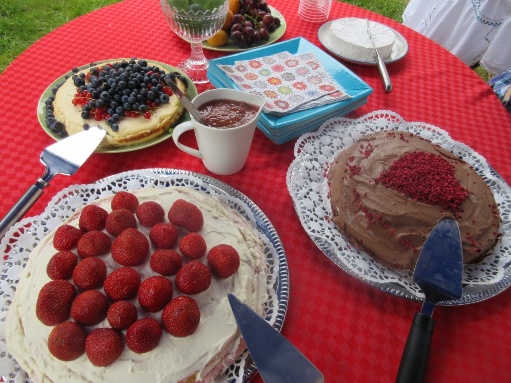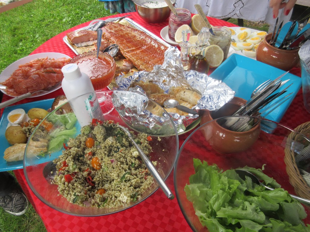 ”Lähes kaikki ruuat ovat itse tehtyjä”, Jaana hehkutti – aiheellisesti. Herkuttelimme kalalla, lammaspaistikkailla ja salaateilla. Se oli kuitenkin vasta alkua. Kun päästiin jälkiruokiin, pikkupojat olivat innoissaan.