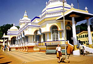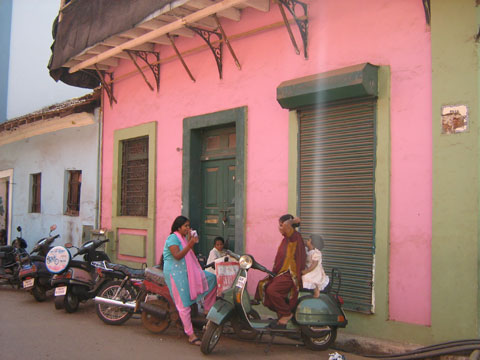 Keskiviikkona maltoimme lahtea retkeilemaan. Sovimme taksipojan kanssa viiden tunnin paakaupunkiretken 450 rupian hintaan (noin 9 euroa). Amit jatti meidat Our Lady of the Immaculata -kirkon eteen ja lupasi noutaa neljalta iltapaivalla. Teimme Lonely planetin suositteleman 4,5 km kavelykierroksen vanhassa kaupungissa, jossa oli portugalilaisten perua varikkaita taloja. Reitin varrella oli myos kuvassa nakyva temppeli seka varakkaiden asuttama Altinho -kukkula. Retkesta keskipaivan helteessa naantyneina etsimme opaskirjan mukaan ”kaupungin viehattavinta ja tunnelmallisinta” ruokapaikkaa Hotel Venitea. Pyorimme parin korttelin ympari useaan kertaan ja kysyimme ainakin kymmenelta paikalliselta, ennen kuin virkistyspaikka loytyi. En muista, koska kylma olut olisi maistunut yhta hyvalta! Ruokakin oli maukasta, kokeilimme portugalilaisia erikoisuuksia. Lounaan jalkeen ehdimme viela pikaisesti vilkaista Bombay Bazaria, ennen kuin oli aika lahtea paluumatkalle. Siestan jalkeen kavelimme rannalle katsomaan tuttuun tapaan auringonlaskua.