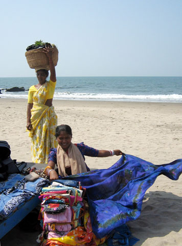 Hippimarkkinat Goassa olivat hilpeät, vaikkei juuri hippejä nähtykään. Rannalla oli kaikenkarvaista kauppiasta. Eksoottisin ostos oli varvukset eli varvasrenkaat. Jaana sovitti ja lupasi antaa ne Annalle.