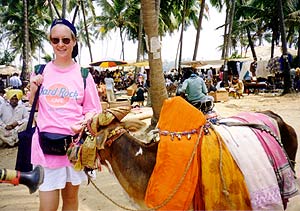 Vietimme Mapusan -markkinoilla aamupäivän. Taksikyyti maksoi 160 rupiaa ja 20 rupiaa odotustunneilta. Täällä voi elää sananmukaisesti herroiksi. Ruuat maksavat noin 100 rupiaa hengeltä King Fishereineen kaikkineen eli noin 16 markkaa. Vietämme parhaillaan iltapäiväsiestaa hotellin altaalla postikortteja kirjoitellen. Ostimme ihania jumalankuvia markkinoilta yksi rupia kappale. Muutakin eksotiikkaa löytyi. Annalle kastimerkkejä otsaan, Miikalle suitsukkeita loppuiäksi. Jussille ray-banit 100 rupiaa. Lisäksi saimme ihanat Varanasin silkkipaidat, Jussille tumma luumu, minulle violetti, molemmissa on kasmirkuvioita. Söimme Calanguten kylässä valkosipulirapuja ja Jussi tutustui kanavindaloohon, joka oli aika tulista. Minä sain upeita videokuvia rannalta. Seebut ja sariasuiset naiset paistattelivat päivää sulassa sovussa.