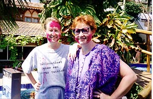 Tänään on Holy -juhla. Saimme Jaanan ja Jussin kanssa värimaalia kasvoille. Isä kieltäytyi kunniasta. Tuija jäi lounaan ajaksi lepäilemään rannalle. Ranta on elämys. Naiset kantamukset pään päällä kaupittelevat huiveja ja hedelmiä. Molempia on ostettu. Jussi on saanut lempiystävän. Tyttö läksytti Jussia suu hymyssä perinpohjaisesti. Jussi erehtyi ostamaan toiselta myyjältä ananasta, vaikka oli luvannut tehdä tytön kanssa kaupat. Hiekkarantaa ja 30 asteista lämmintä vettä riittää. Rannalla kävelee seebuja sulassa sovussa yläosattomien turistien kanssa. Jännittävintä oli nähdä tanga -asuisia miehiä. Enpä ole moisia ennen nähnyt…