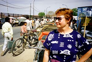 Olipa tosi värikäs näytelmä, kaduilla kävi vilske. Kuljimme pitkin kangasbasaareja, vihannestorilla ja liikenteen keskellä. Tumma paljasjalkainen pikkutyttö isänsä kanssa liittyi seurueeseemme.