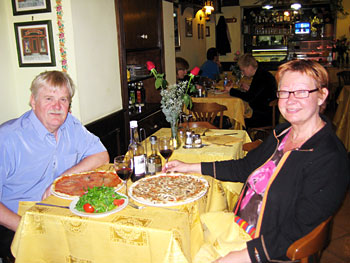 Täysin hämääntyneinä palasimme Circus Maximuksen kautta noutamaan hotellilta matkalaukut kotimatkaa varten. Ennen lähtöä Jussi halusi testata elämänsä ensimmäisen pizzakokemuksen. Nuorena miehenä hän oli Italiassa tilannut anjovispizzan ja kauhistellut sen makua. Jussin ilme oli näkemisen arvoinen, kun hän haukkasi ensimmäisen palan. Maku oli aivan yhtä kaamea kuin hän muistikin. Onneksi minun sienipizzani oli herkullinen. Näin maallisissa tunnelmissa pääsimme matkaan. Sielun sopukoihin jäi kutkuttava tunne, että seuraavalle matkalle jäi vielä paljon näkemistä. Tuliaisina meillä oli laukuissa antipastoja, parmesaanijuustoa, parmankinkkua, oliiviöljyä ja grappaa sekä 300 valokuvaa ja Caravaggio-kalenteri vuodelle 2009.