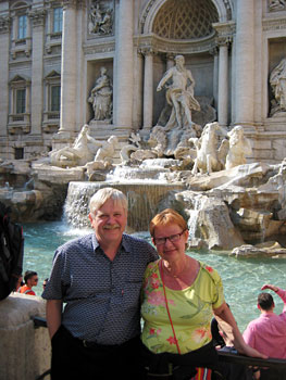 Päivän turistikohteemme olivat Piazza di’Spagna ja Fontani di Trevi. Espanjalaiset portaat oli koristeltu matkailijoiden iloksi värikkäin kukin. Poseerasimme yhdessä ja erikseen valokuvissa ennen päivän kirkkokierrosta. Vuorossa olivat Borrominin peribarokkinen San Carlo sekä jesuiittakirkot Sant’Ignazio ja Il Gesù. Sant’Ignazion mielikuvitukselliset kattomaalaukset olivat vertaansa vailla. Tuijotimme hartaasti niskat kipeinä hurjaa barokkitaivasta.